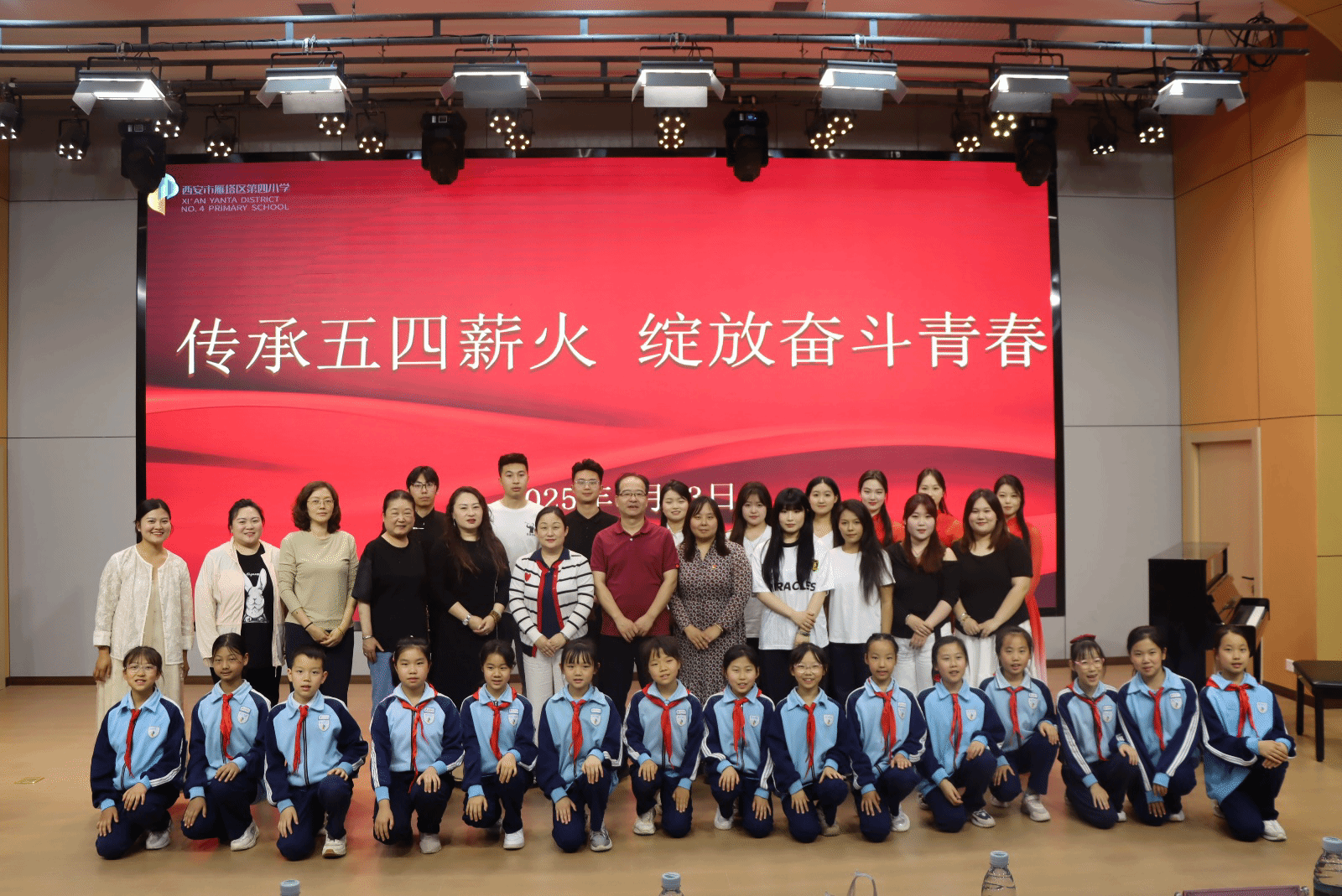 4月23日下午,bwin必赢登录入口党总支赴西安市雁塔区第四小学携手开展了“传承五四薪火 绽放奋斗青春”艺术实践活动,西安市雁塔区第四小学校长文燕、bwin必赢登录入口党总支委员高婧及双方师生代表共同参加此次活动。