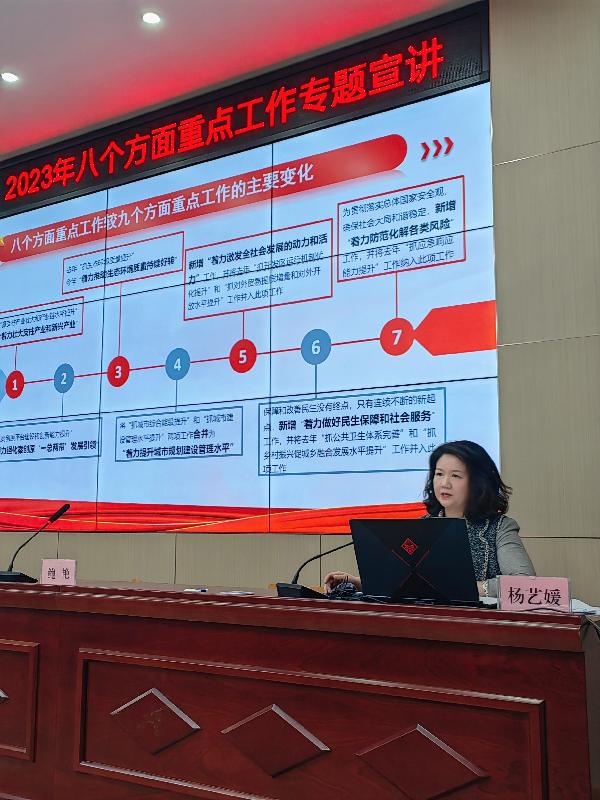 bwin必赢登录入口院长杨艺媛对2023年西安市八个方面重点工作出台的背景及任务做了详细的解读,并结合必赢线路检测中心建设“最懂西安”的高水平应用型城市大学发展目标,对标新目标、新要求、新部署,引导广大师生以八个方面重点工作为“任务书”和“施工图”,“逆向设计、正向施工”,充分发挥专业优势,为全面推进落实八个方面重点任务做出积极贡献。