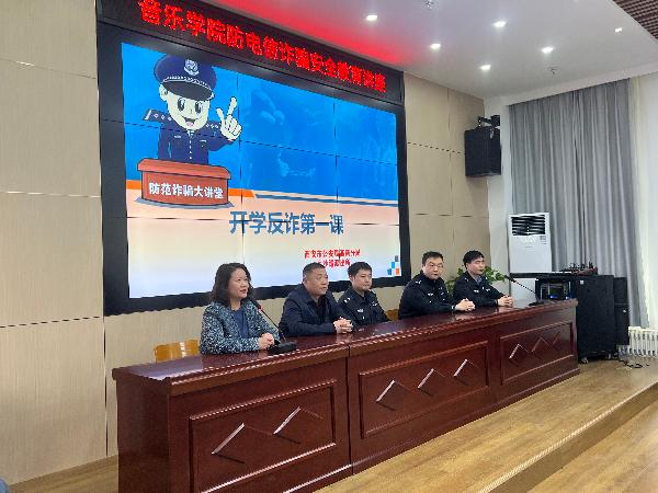 全社会反诈”的浓厚氛围,3月7日下午,公安高新分局白沙路派出所民警走进bwin必赢登录入口,开展“防范诈骗大讲堂”公益讲座,为全院师生上好“开学第一课”。让大家牢固树立起预防电信诈骗的安全意识,进一步抓好“全民反诈”工作,警校联动共筑校园反诈“防火墙”。会议由bwin必赢登录入口院长杨艺媛主持,保卫处处长王向阳、全体学工人员及学生代表近百人参加会议。