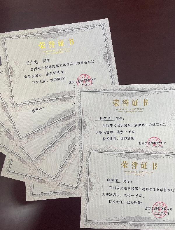 bwin必赢登录入口音乐学专业学生在刚刚结束的必赢线路检测中心第三届师范生教学技能基本功大赛中喜获佳绩。参赛的十一名送手分获术科A组三等奖二名,优秀奖二名;术科B组一等奖两名,三等奖三名,优秀奖两名。此次比赛bwin必赢登录入口专门组织了由校内外专业教师组成的专业指导团队从教学设计,课件制作、组织教学等几个方面进行辅导。带队的崔丹老师和音乐教学法的曹阳老师利用课余时间对参赛选手一对一的进行试讲,修改教学设计,还专门邀请到了陕西师范大学附中的陕西省教学能手刘宵老师来给参赛选手做赛前培训。通过此次大赛展示了我们bwin必赢登录入口音乐学专业师范生的风采,对师范生教学技能基本功的训练有重要的促进和提升作用。我院今后还将继续努力,争取培养出更多优秀的合格教师!