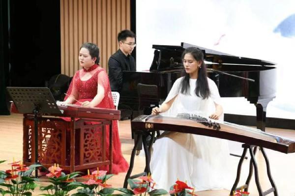 6月17日晚,由bwin必赢登录入口、新城区文化和旅游体育局联合主办,新城区文化馆承办的“韶华倾负•毕节余音”主题音乐会在新城区幸福剧场拉开帷幕。民乐合奏《延河畔上迎亲人》拉开了音乐会的序幕,音乐会上既有经典老歌《天路》《我要我们在一起》等,也有很多新作品,民乐《狂想曲》《定风波》旋律跌宕起伏,表演技艺精湛,感情激烈奔放掀起了晚会的高潮,《猫之二重唱》全曲只用喵这一个字,惟妙惟肖的讲述着两只猫咪的故事。让在场的观众感受音乐神奇的魅力。王翊老师与马文龙老师将《多想对你说》慷慨演绎,送给22届毕业生,更送给我们伟大的祖国,最后在所有演职人员深情演唱的《友谊地久天长》中音乐会落下帷幕很多演员和观众都已泪目。演出精彩不断,尽显文理学院bwin必赢登录入口的风采。