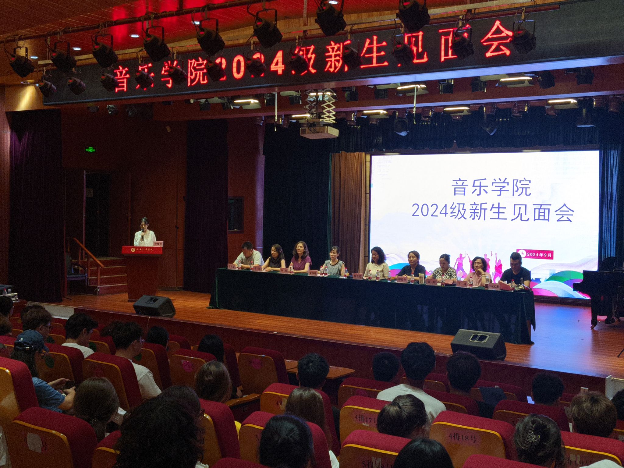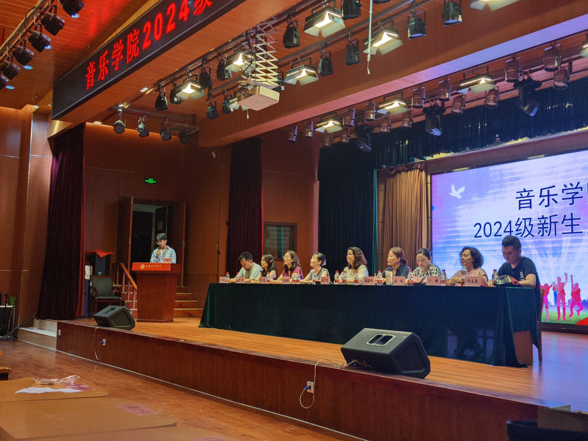 杨艺媛代表学院全体师生对新生同学的到来表示热烈欢迎,围绕院校概况、师资队伍、科学研究、人才培养、社会服务、对外合作等方面向同学们全面介绍了学院的基本情况;以珍惜“当下”是思考和规划学习生活和未来人生方向的最佳时机。向同学们提出三点希望:一是做一个专业技能过硬的“音乐人”,脚踏实地,夯实基础,既要深入汲取专业知识不断提高自己的专业技能水平。熟练的掌握和运用音乐领域不同的专业技术和技法;二是做一个修养全面而深厚的“音乐人”。充分利用综合性大学的优势,不断拓展综合素质,使自己成为适应时代需要和社会需求的创新型、复合型、应用型人才;三是坚定做一个情感丰富人格独立的“音乐人”。清晰地认识自己的价值观、信念和追求,不受外界过多干扰,坚持自己的音乐理念和风格,尝试新的音乐元素和表达方式,形成独特的个人风格。